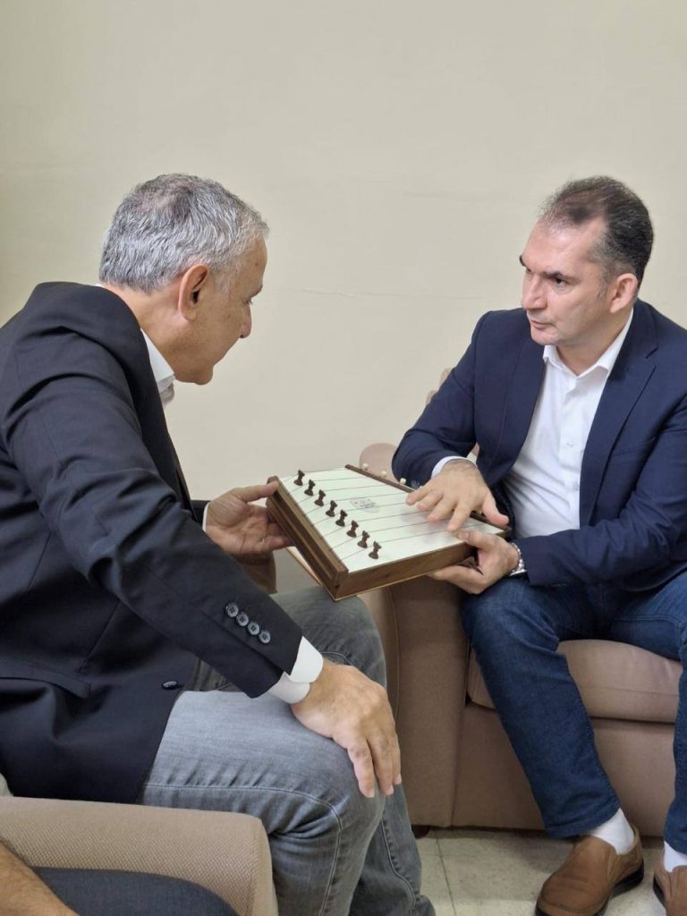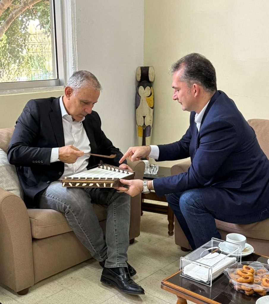 On this occasion, Dr. Hayaf Yassine presented a “Pedagogical Santur” as a gift to Mr. Karim Al Rassi, explaining that it is his own invention, which he registered in his name in 2005. Its purpose is for school use to perform Eastern Maqam music in an easy and correct manner, allowing children to root their Lebanese, Arab, and Eastern cultural identity.
