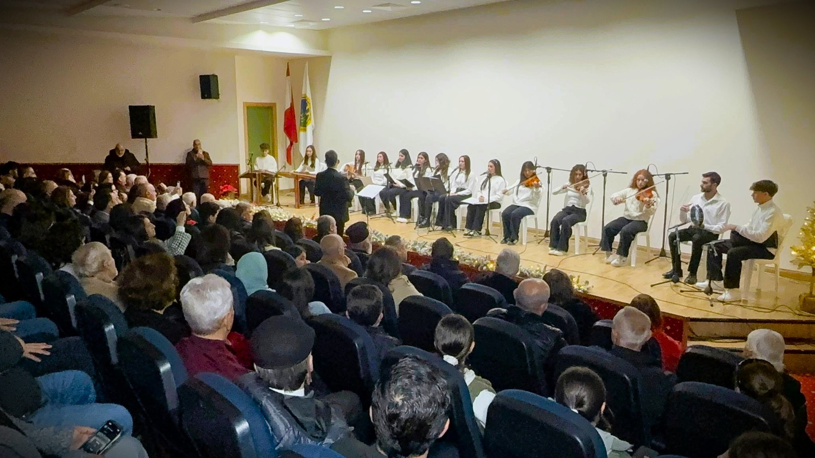 بدعوة مشتركة بين كلّ من “مركز عكّار للتنمية المستدامة” و”مدرسة ليسيه عبد الله الراسيّ\حلبا” و”بلديّة بزبينا” و”جامعة البلمند” و”جمعيّة النجدة الشعبيّة اللّبنانيّة” و”بيت الموسيقى” (في جمعيّة النجدة)، أحيت مجموعة من الشبّان والشابات في “بيت الموسيقى” أمسية ميلاديّة من التقاليد الموسيقيّة المشرقيّة بقيادة الدكتور هيّاف ياسين، وذلك على مسرح “جامعة البلمند” (كليّة عصام فارس للتكنولوجيا) في منطقة “بينو” العكّاريّة، بحضور من فعاليّات المنطقة الثقافيّة والأكاديميّة والتربويّة والاجتماعيّة والدينيّة.